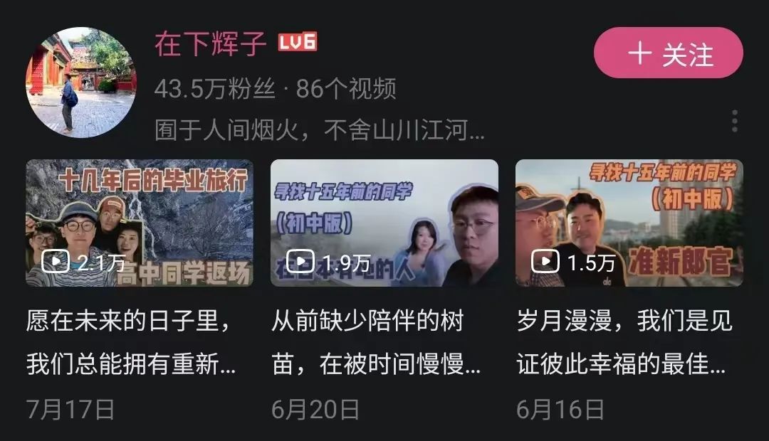面对这些客观限制,中腰部创作者不得不采取差异化策略,扬长避短地寻找生存空间。他们通常选择用第一视角的生活体验或者观察,来弥补专业层面的不足,以及有效减少制作成本压力。比如,“在下辉子”探访自己高中同学、初中同学、北漂朋友等,镜头关注的是一群人不同人生岔路下的选择;“迟早是我”则是从体验职业层面出发,去还原职业背后的规则,以及工作背后的人情冷暖。