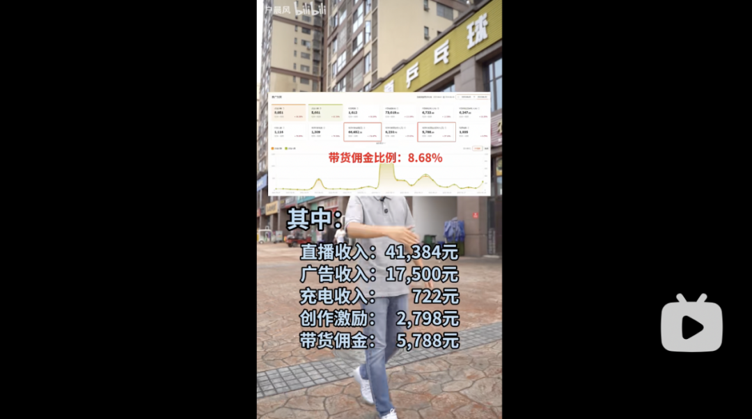 另一部分博主则选择较为稳妥的方式,将内容中心放到“维持人设”,而非“内容品牌”。“户晨风”每个月都会主动释出自己的收支情况,虽然也有广告收入,但其中,他个人锐评连麦的直播更多占了大头。