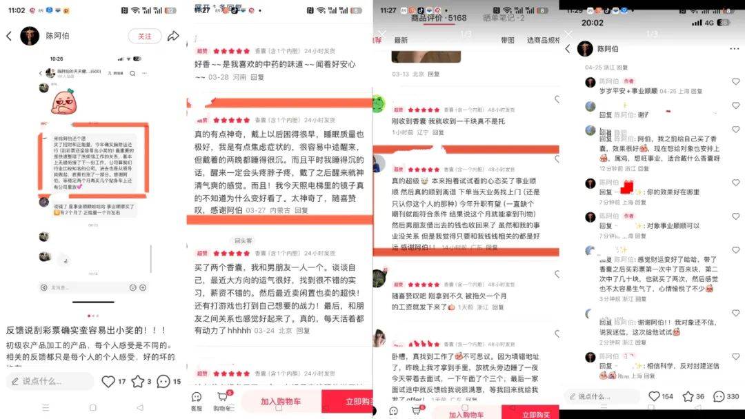 当然,他们没机会像陈阿伯一样收获暴利。陈阿伯显然深谙营销之道,小红书上的笔记,几乎全是客户反馈所购买的产品“太灵验”。其中有一位客户反馈,“太神奇了,今天发奖金了!拖了4个月了,就是发的没有预期高。年底我得多买几个提升一下奖金的数量。”并强调,“我不是托。”博主以“哈哈哈哈”戏谑回应,“你就是托。”