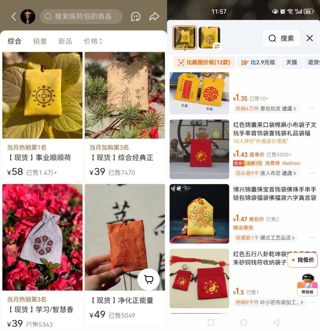 (左为陈阿伯店铺售价,右为淘宝类似香囊售价)