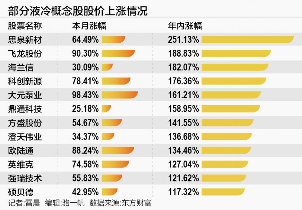 记者了解到,近期涨幅领先的液冷个股并非单纯的概念炒作,而是有着一定的业绩支撑。