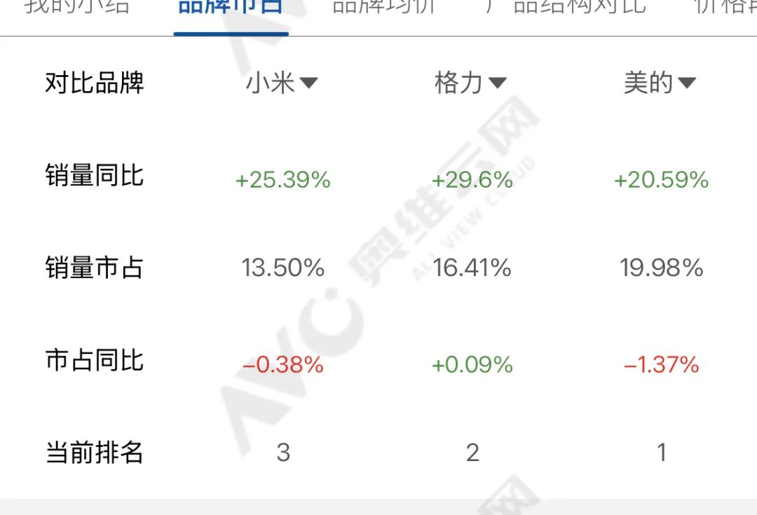 近日,有网友发文称奥维云网更新了7月份中国空调线上份额数据,数据显示7月份线上空调,小米市场份额为16.71%,格力电器为15.22%,分别是第二、第三名。