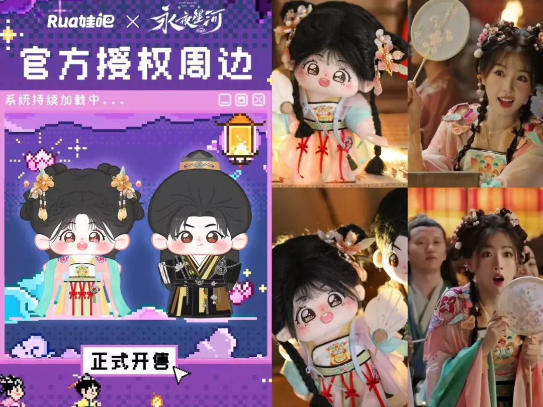 市场进入爆发阶段后,资本的加持为周边衍生品带来更多可能性。据媒体报道,仅Rua娃吧与《山河令》合作的1000只官方棉花娃娃,就以17秒售罄。IP授权模式上,从被动授权开始出现主动IP深度合作的新模式,《长相思》就首次尝试了设计前置,IP方深度参与设计以确保角色还原度与市场契合度。在营销上也开始尝试全链路模式,Rua娃吧提前《长相思》将角色棉花娃娃送至主演手中,配合剧组扫楼宣传,实现“影视热度+衍生品”同步爆发。