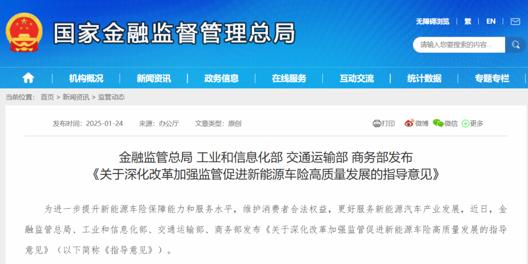 今年1月,金融监管总局、工业和信息化部、交通运输部、商务部联合发布《关于深化改革加强监管促进新能源车险高质量发展的指导意见》(以下简称《指导意见》),重点提出要合理降低新能源汽车维修使用成本。