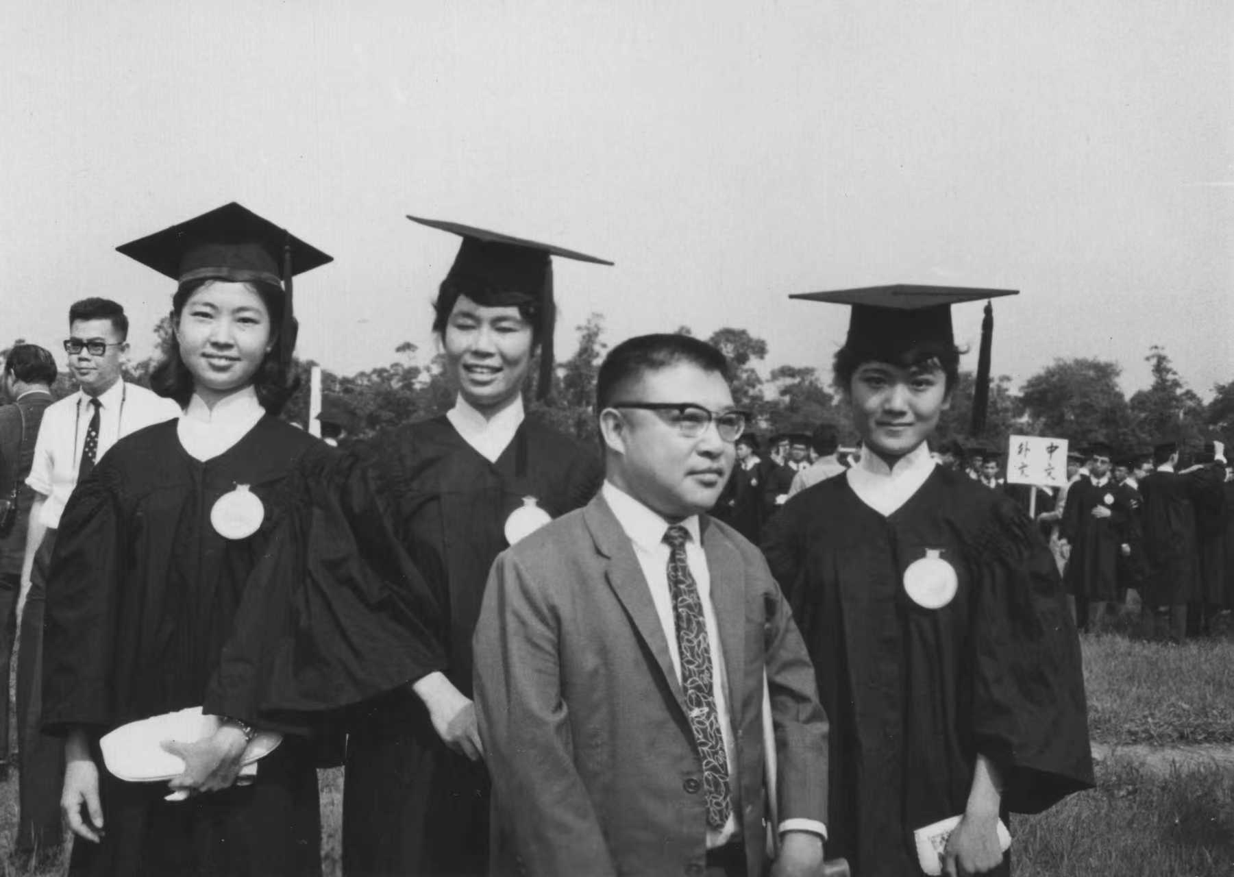 时任台大历史系主任的许倬云(右二)与学生毕业留影(摄于1965年)