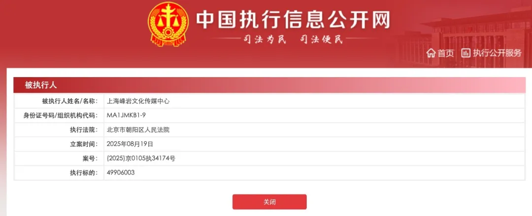 中国执行信息公开网显示,近日,李易峰、上海峰岩文化传媒中心、北京博众星和影视有限公司等被北京市朝阳区人民法院 强制执行约4990万元。