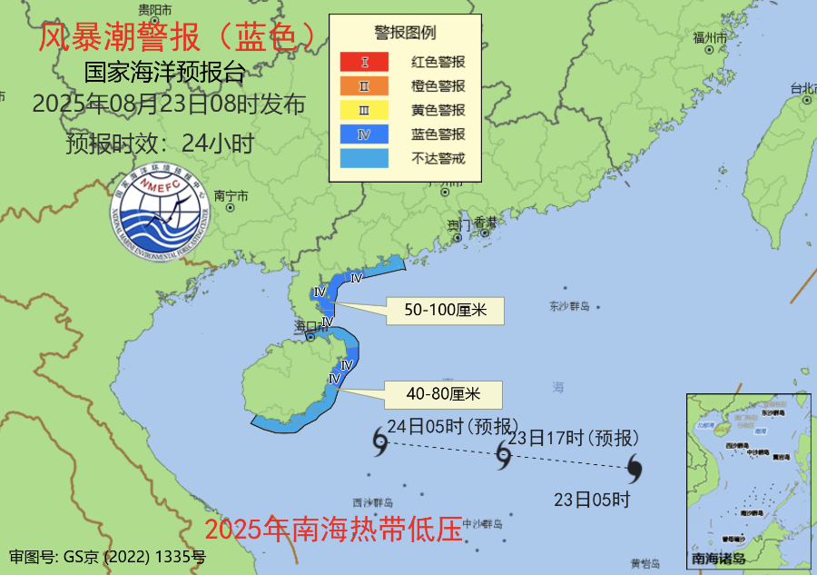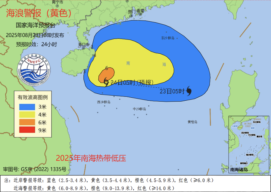 国家海洋预报台今天(23日)上午发布海浪黄色和风暴潮蓝色警报,广东、海南等地需提前做好应急措施。