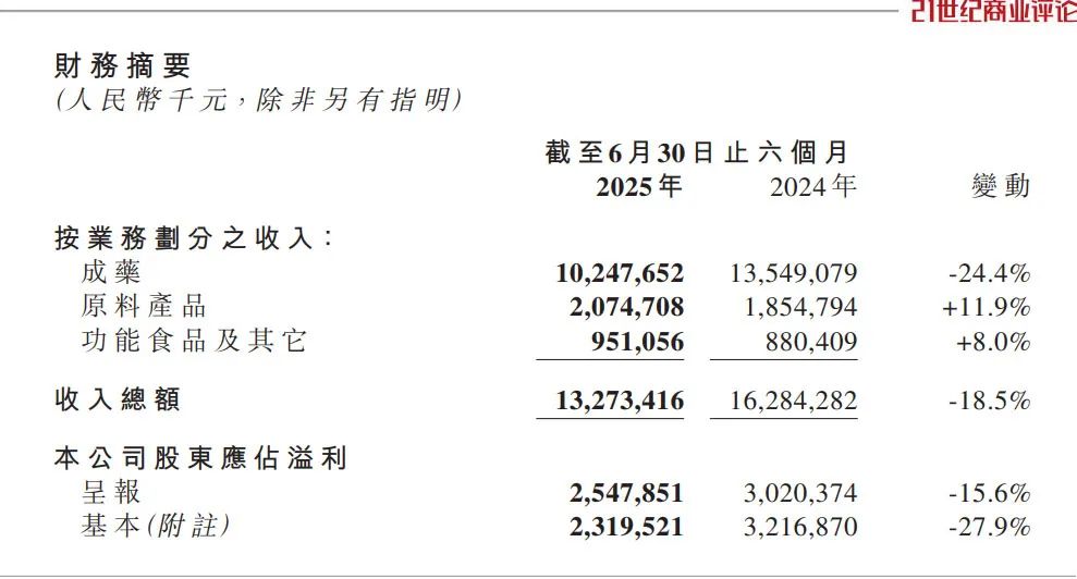 上半年,其成药业务收入102.48亿元,同比下滑超过两成。
