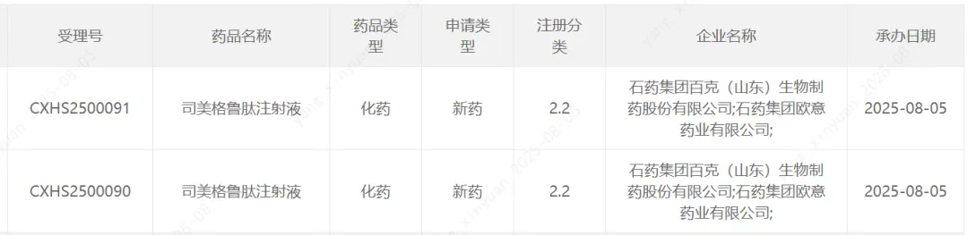 除了7月末授权的SYH2086,8月初,其自主研发的司美格鲁肽注射液,上市申请获受理。