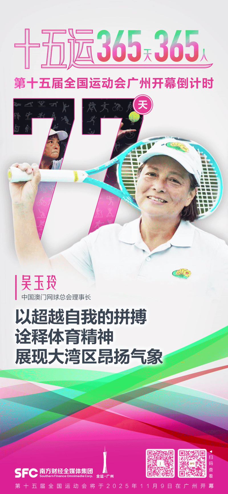 第十五届全国运动会将于2025年11月在粤港澳三地举行。这是一场体育盛会,更是推动全民健身、促进体育事业高质量发展的重要契机。南方财经全媒体集团与十五运会和残特奥会广州赛区执委会在十五运会开幕倒计时一周年之际,推出“十五运365天365人”专栏,聚焦运动员、企业家、专家学者、体育爱好者及社会公众的全运故事与全运期待,让更多人了解和关注十五运,生动呈现我国体育精神、城市活力和文化魅力。