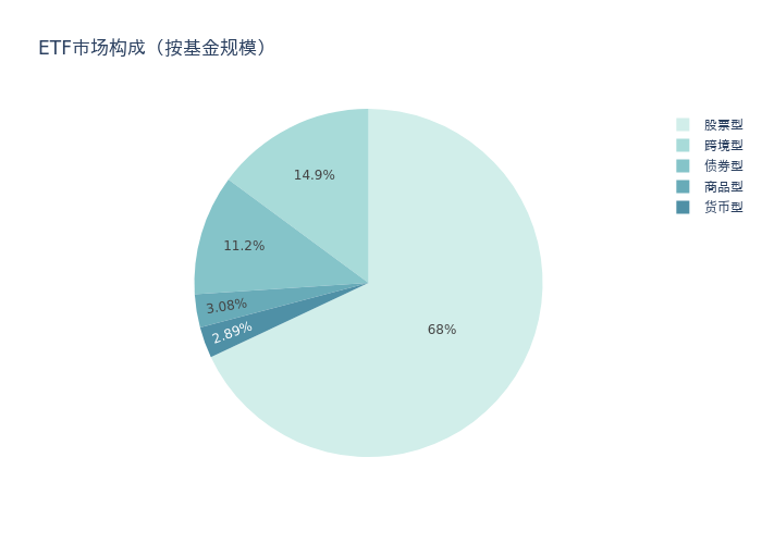 基金规模方面,上周ETF市场总规模达到49569.64亿元,较前一周增加1868.97亿元。其中,股票型ETF为33706.94亿元,债券型ETF为5536.95亿元,货币型ETF为1430.24亿元,商品型ETF为1525.19亿元,跨境型ETF为7370.32亿元。