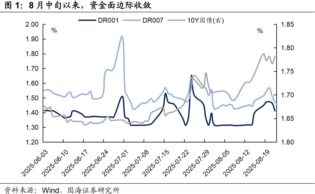 8月中旬以来,资金面边际收敛,带动债市利率上行。截至8月22日,DR001上行至1.41%,近期资金面为何收敛?对于债市又有何影响?本文将对此进行分析。
