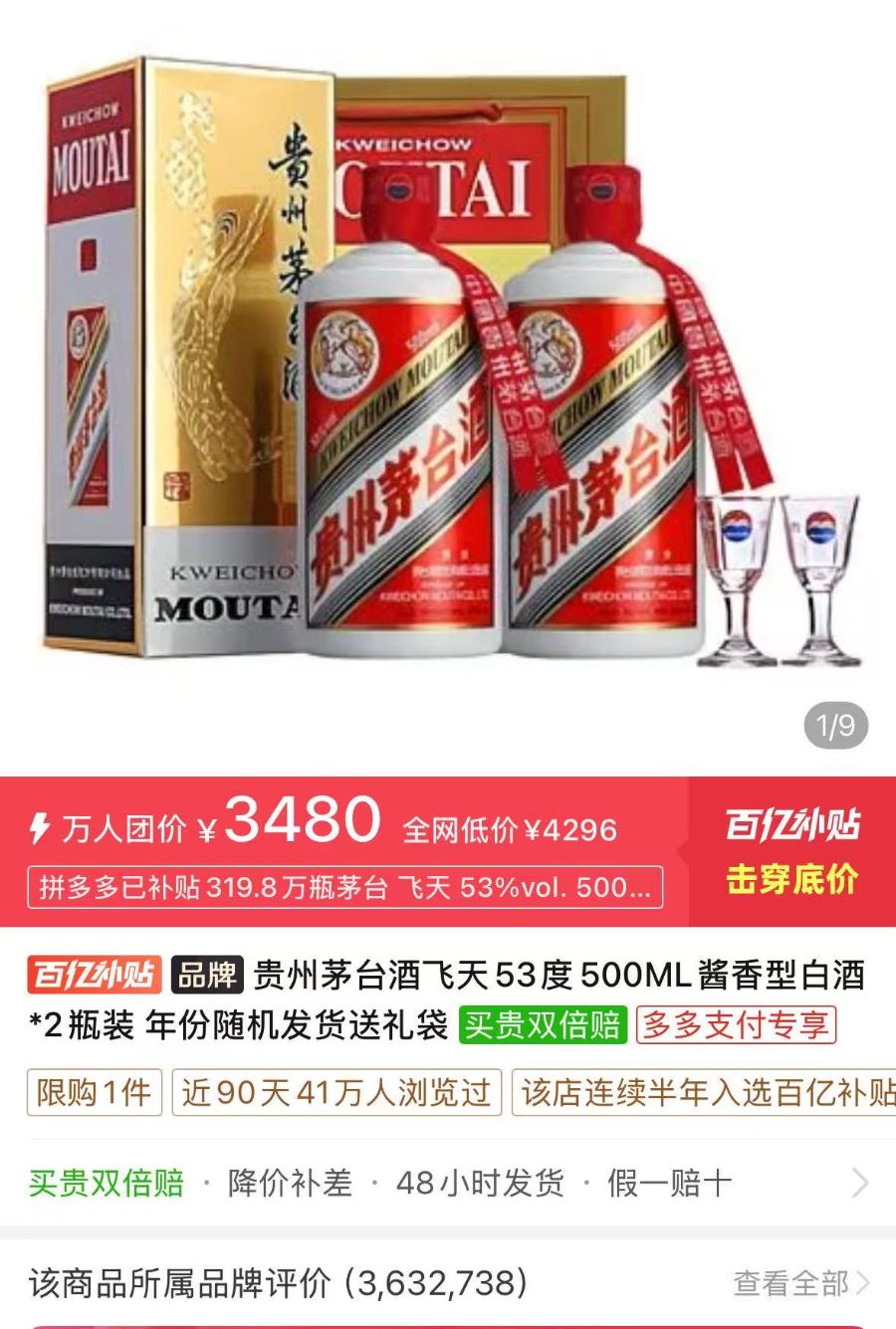 在零售价层面,飞天茅台与“蛇茅”电商平台上售价也回落明显。8月26日,飞天茅台在拼多多上一些店铺的售价仅1800元/瓶,双瓶装售价报3480元,折合每瓶仅1740元,“蛇茅”的售价低至1984元/瓶,相关店铺均承诺假一赔十。在京东,飞天茅台出口版低至1110元/瓶,店铺称支持鉴定,100%保真;不过,“蛇茅”的售价普遍在2000元以上。