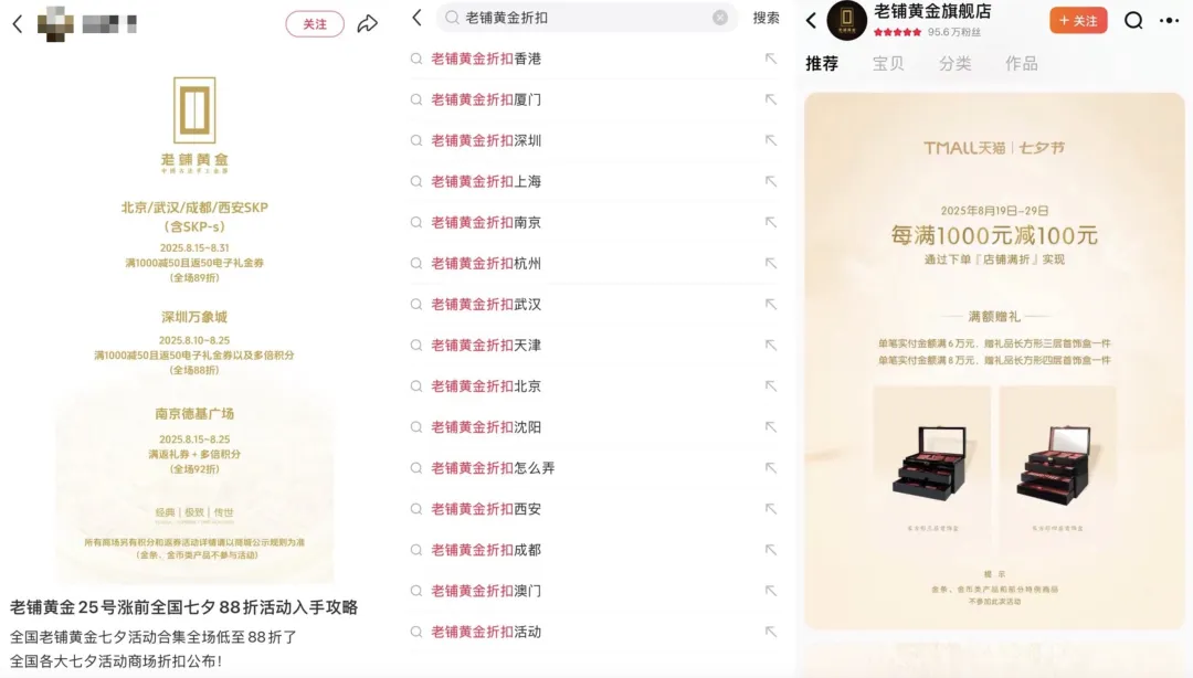 尽管老铺黄金一年几度涨价,但它打折的时候也不少。