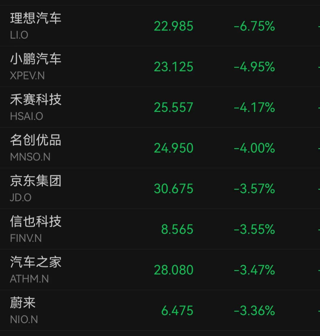 21财经·南财快讯记者梳理发现,多只热门中概股下跌,其中,理想汽车跌逾6%,小鹏汽车跌近5%,蔚来跌超3%。