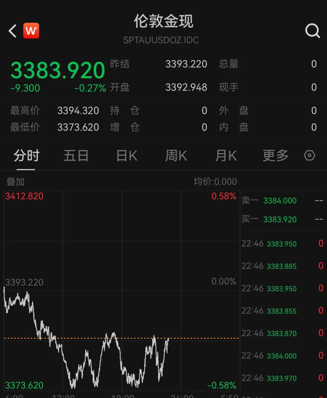 黄金方面,现货黄金震荡跳水,一度跌破3380美元/盎司。