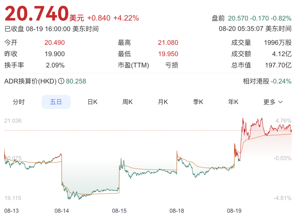 财报发布后,小鹏汽车美股股价应声而涨。截至美东时间8月19日收盘,小鹏汽车美股股价上涨4.22%,报20.74美元/股。