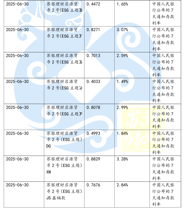 苏银理财“启源货币2号(ESG主题)”截至二季度末存续规模68.29亿元,其产品名中的“ESG”字样与投资品种选择有关,该产品会挑选符合ESG理念的行业和企业以及高等级、高流动性的优质资产进行重点配置。据南财理财通数据,该产品近1个月披露的七日年化收益率均维持在3%左右。