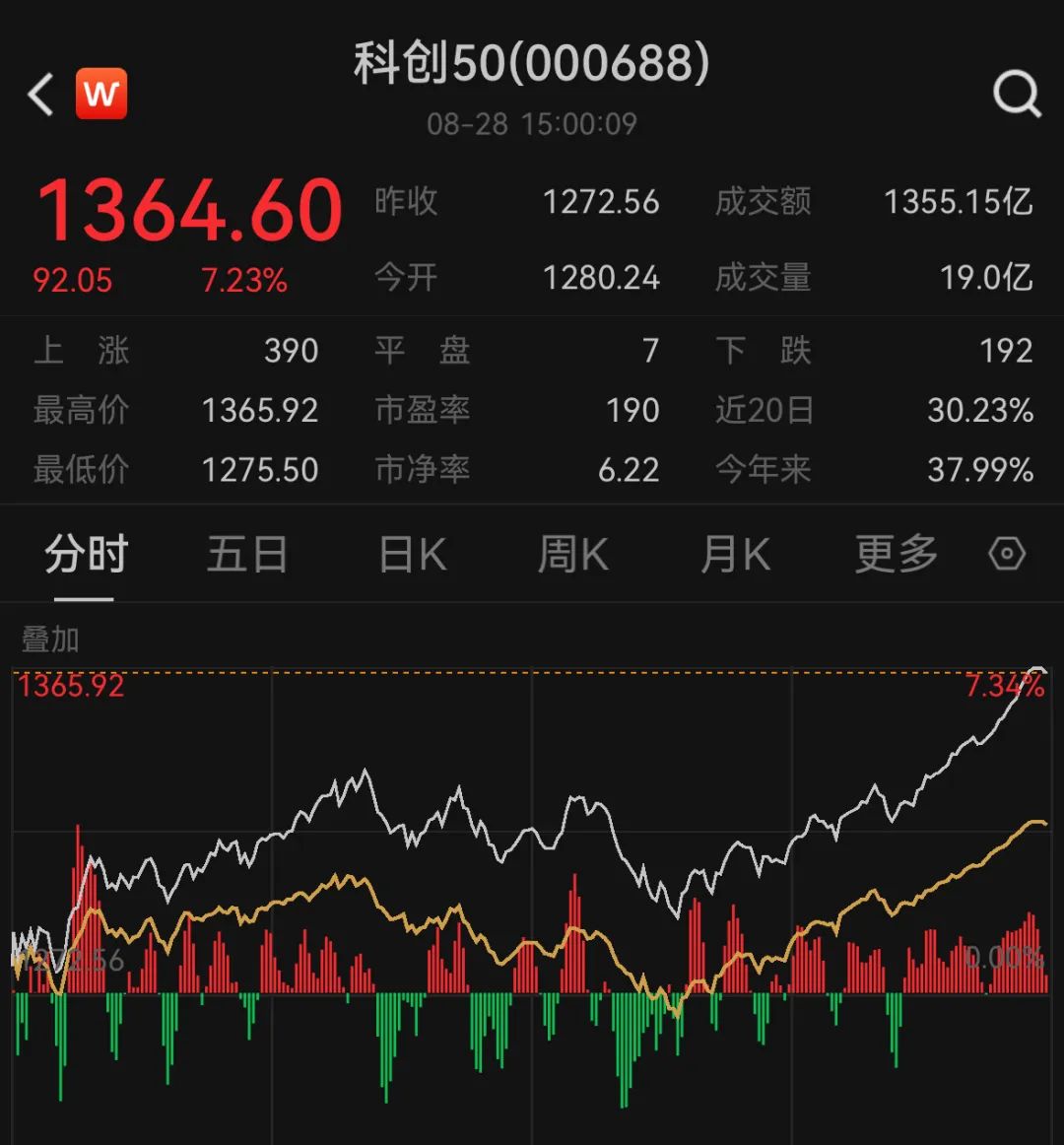 8月28日,A股尾盘冲高,截至收盘,沪指涨超1%,深证成指涨超2%,创业板大涨近4%。