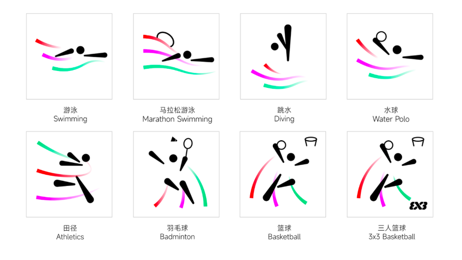 发布会现场,十五运会和残特奥会体育图标和运动造型正式发布。十五运会和残特奥会体育图标和运动造型设计师、广州美术学院视觉艺术设计学院副院长刘平云表示,本届运动会体育图标在设计上创新性地使用了红紫绿三色渐变作为基础,并由此衍生出包括彩色、黑白的多种版本,展现了体育图标设计的灵活性与多样性。