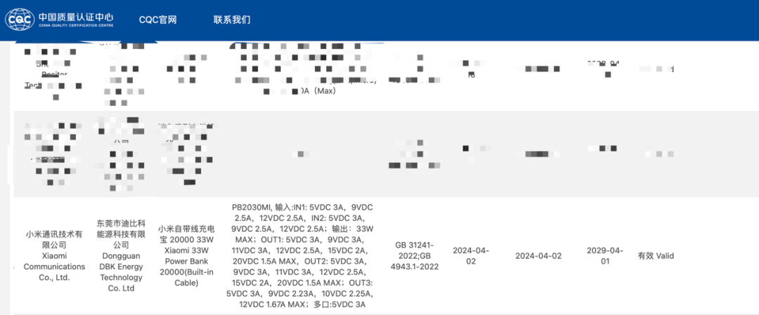 中国质量认证中心官网显示,PB2030MI型号充电宝的产品名称为小米自带线充电宝 20000 33W,3C认证取得日期为2024年4月2日,有效期至2029年4月1日,现状态为有效。科创板日报从上游供应链获悉,小米方面已经开始启动对电芯供应商安普瑞斯的经济追偿,对安普瑞斯电芯问题导致的损失通过法律手段进行追责。