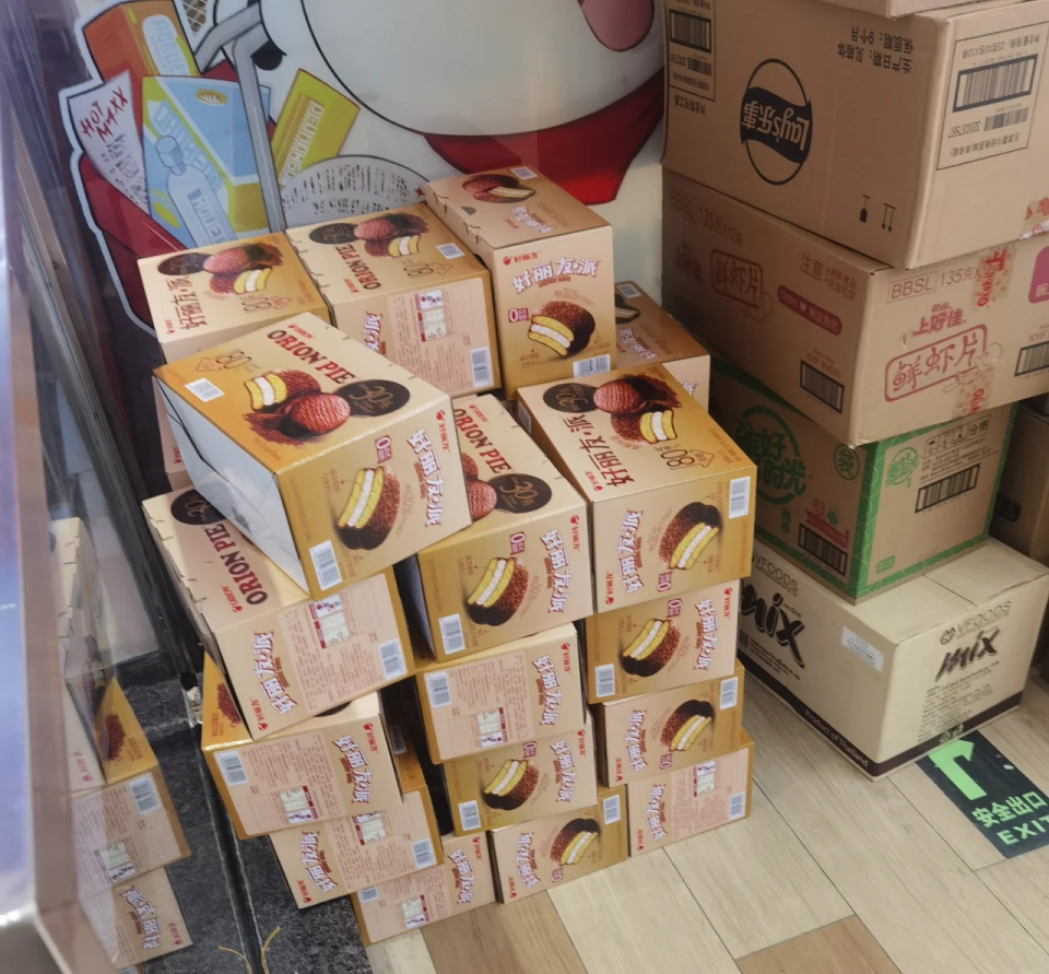 好特卖门店堆放的低糖好丽友派。 图源:社交媒体