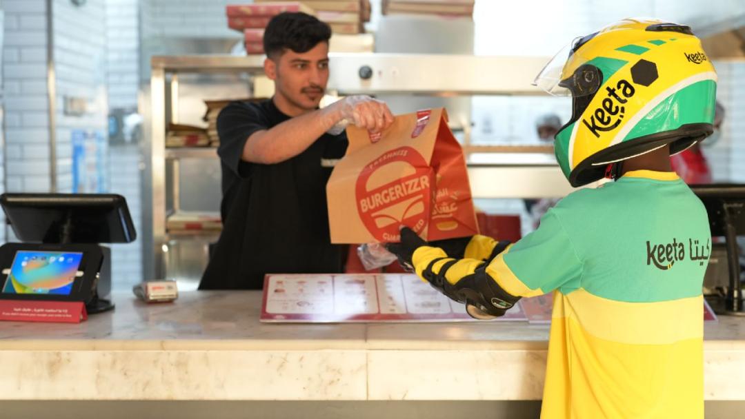 ▲Keeta外卖员在沙特当地餐饮门店取餐 图源:美团官网