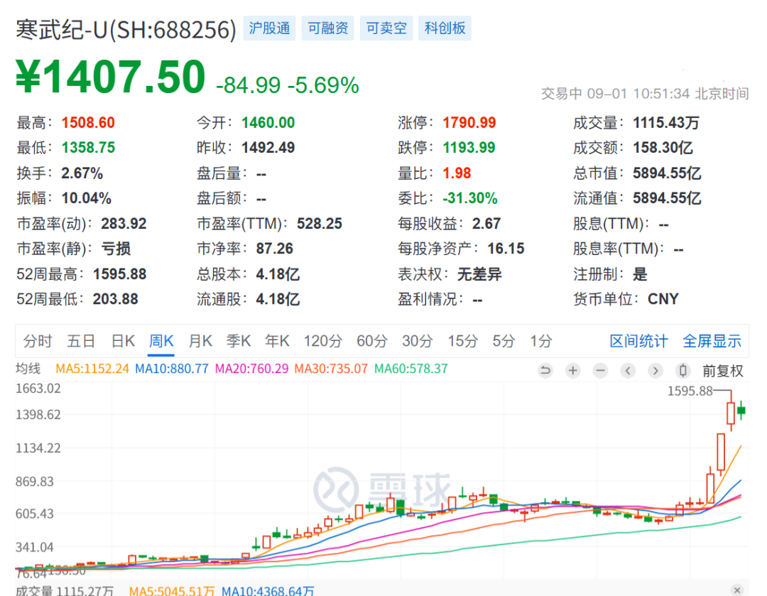 需要注意的是,寒武纪的估值逻辑与传统价值股、业绩股存在本质差异,若沿用经典估值模型,很难全面衡量其价值。对该公司的估值,必须建立在对AI芯片行业技术趋势、产业格局、国产替代进程的深度理解之上。