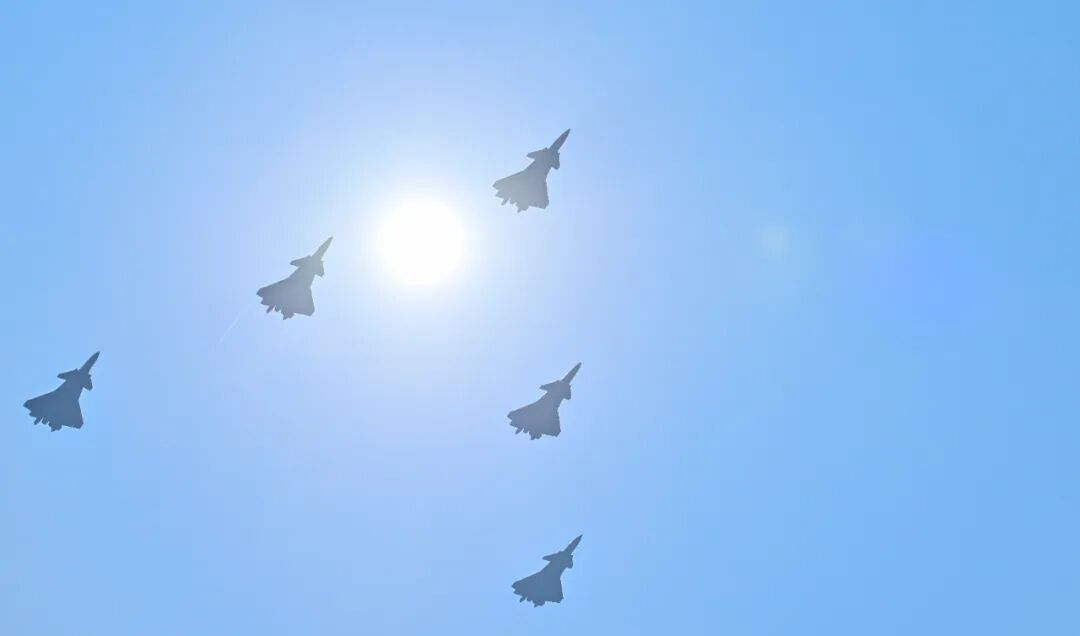 9月3日,纪念中国人民抗日战争暨世界反法西斯战争胜利80周年大会在北京隆重举行。这是歼击机梯队接受检阅。新华社记者 张宏祥 摄
