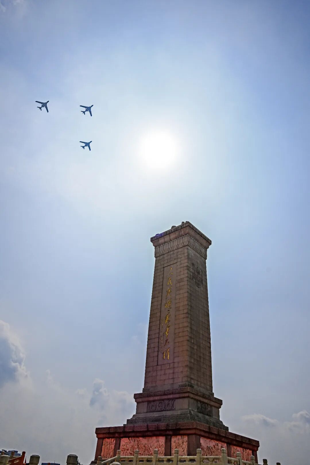 9月3日,纪念中国人民抗日战争暨世界反法西斯战争胜利80周年大会在北京隆重举行。这是轰炸机梯队通过天安门广场。新华社记者 刘颖 摄