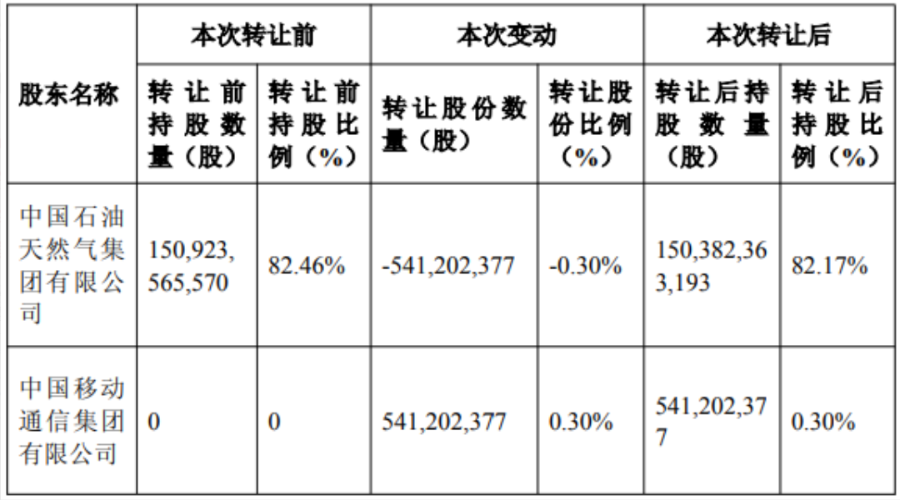 中国石油集团拟将5.41亿股划转给中国移动集团