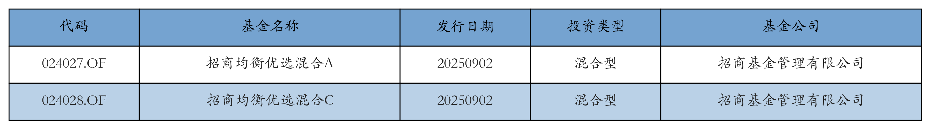 昨日有2只新基金发行,分别为:招商均衡优选混合A、招商均衡优选混合C,详情见下表: