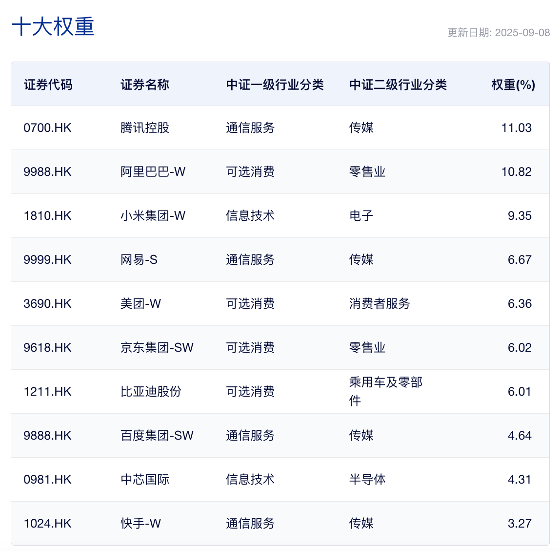 港股科技50ETF(159750)的标的指数汇聚了Terrific 10(中国科技十雄),前十大成份股包含阿里巴巴、腾讯、美团、小米、比亚迪、京东、网易、百度、吉利汽车、中芯国际,覆盖了新能源汽车、智能驾驶、人工智能、半导体等多个科技赛道。