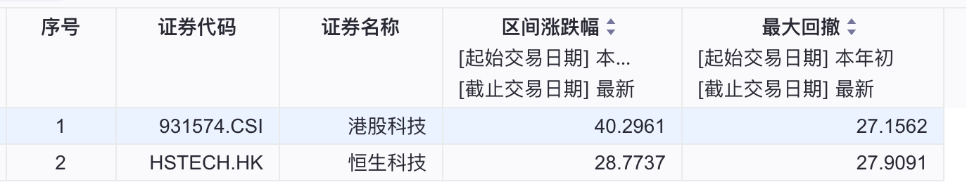 从年内表现来看,截至9月8日收盘,港股科技50 ETF(159750)的标的指数——港股科技指数(人民币汇率)累计涨幅达40.30%,而同期的恒生科技指数涨幅为28.77。最大回撤方面,两者表现相当。