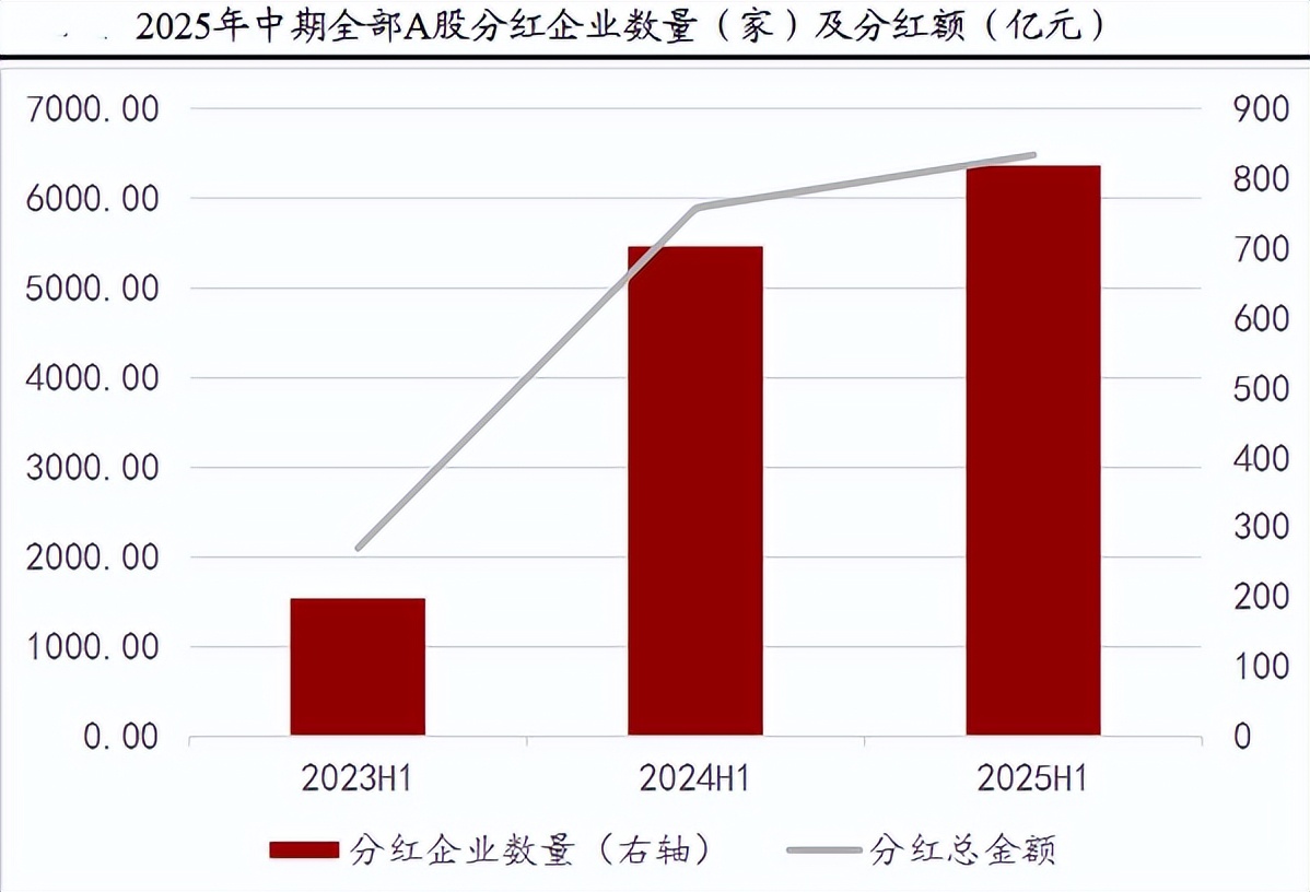 据不完全统计,截至9月9日,A股宣告或实施中期利润分配(含一季报和半年报)的上市公司有820家,分红金额预计超过6500亿元,同比分别增长16.6%、10.1%。