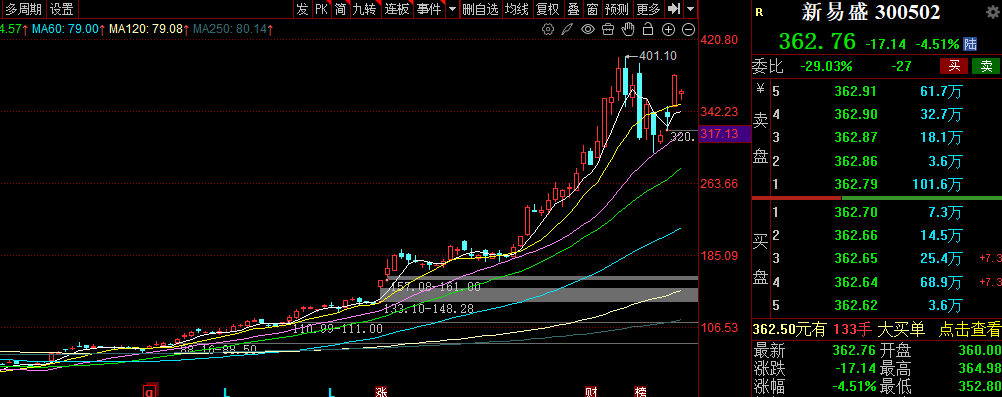 从我个人角度看,明星科技股确实过热,基本面也兑现在股价中。以新易盛为例,4月低点以来,股价涨幅已经超8倍。