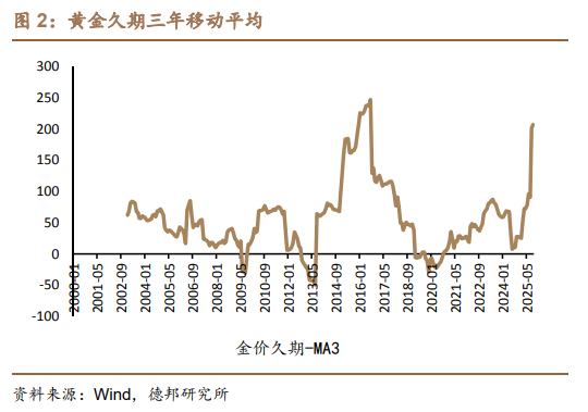 金价与利率相关性的背后是美元币值稳定性的影响,当下黄金追平内在价值,后续利率影响或将放大。金价的影响因素更多来自美元总量,基于我们上图对金价周期的划分以及对黄金内在价值的测算,可以看到在2003-2015年,即利率金价相关性较强的阶段中,黄金的内在价值基本稳定,其内在逻辑为美元的币值基本稳定,因此在此阶段中,金价与利率表现出了更好的相关性。而在此之后的2016-2019年,金价与内在价值大致重合;2020年至今,受前期美联储货币政策收紧影响,一方面内在价值在逐步回收,另一方面是金价在加息的背景下受美元信用推动缓步上涨,直至2024年货币政策转向一举追平内在价值。金价追平内在价值,即金价追平美元币值,我们认为可间接理解为当下美元币值已进入稳定阶段,短时间内有望看到金价对实际利率敏感度的提升。