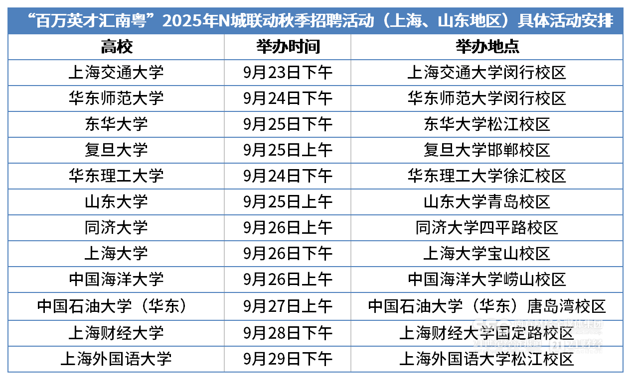 9月12日,南方财经记者从深圳市人社局获悉,作为“百万英才汇南粤”2025年N城联动秋季招聘活动首发站之一,深圳将联合汕尾、河源,组织腾讯、华为、比亚迪等企业携超2万个优质岗位,于9月23日—29日直抵上海、山东两地12所知名高校。