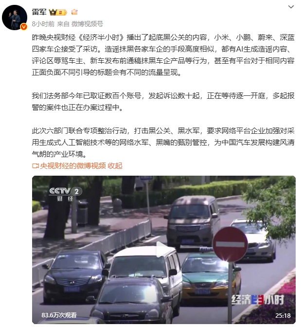 来源:综合自央视财经、@雷军 微博