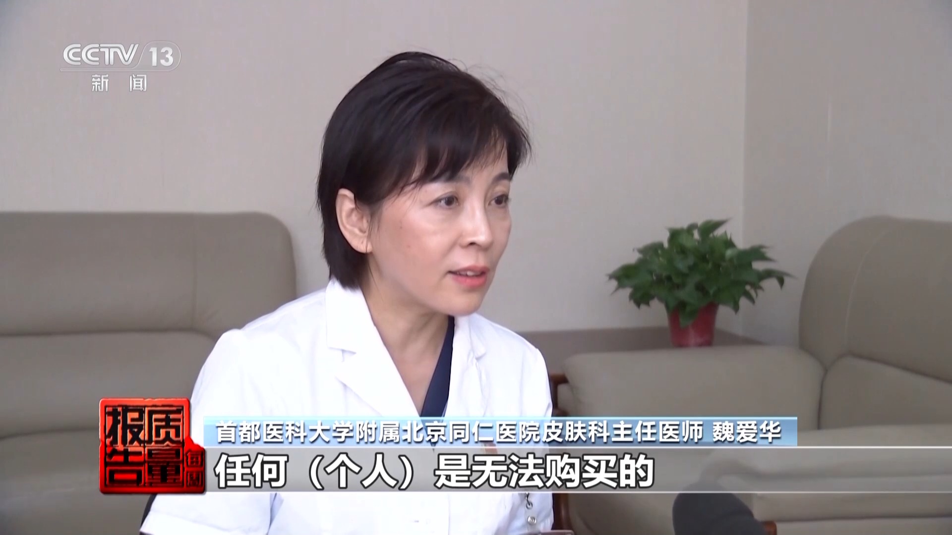 首都医科大学附属北京同仁医院皮肤科主任医师 魏爱华:提醒各位广大的求美者,健康才是最美的,安全才是美丽的前提,不要因为为了美而去选择一些不当的产品或机构。不当的方式,用健康去换容颜,这种代价是得不偿失的,所以专业的治疗还是交给专业的医护人员。