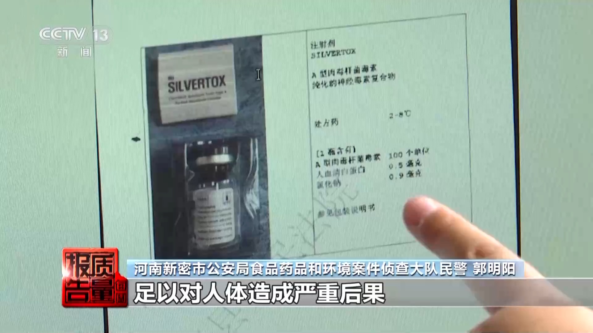 河南新密市公安局食品药品和环境案件侦查大队民警 郭明阳:嫌疑人郭某所购买并且销售的这个肉毒素,是不符合国家规定的,足以对人体造成严重后果,并且这批肉毒素是没有生产批号。