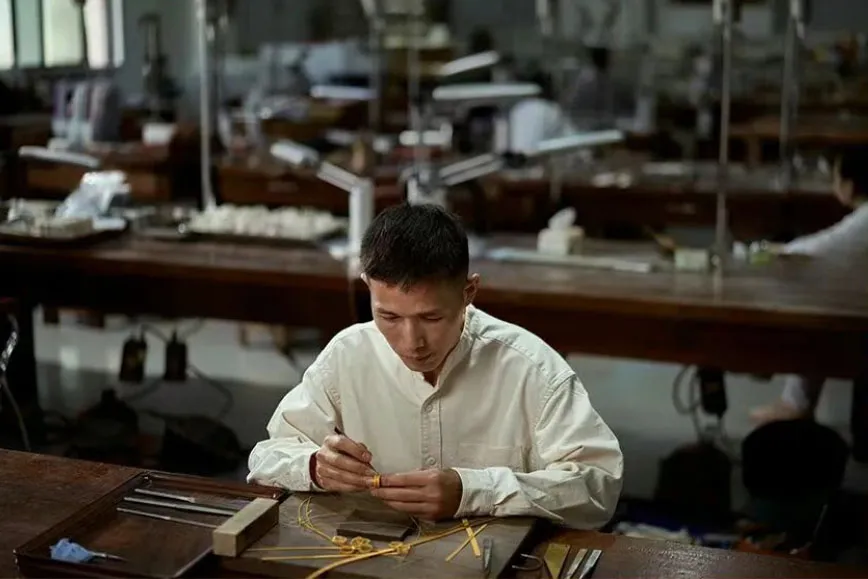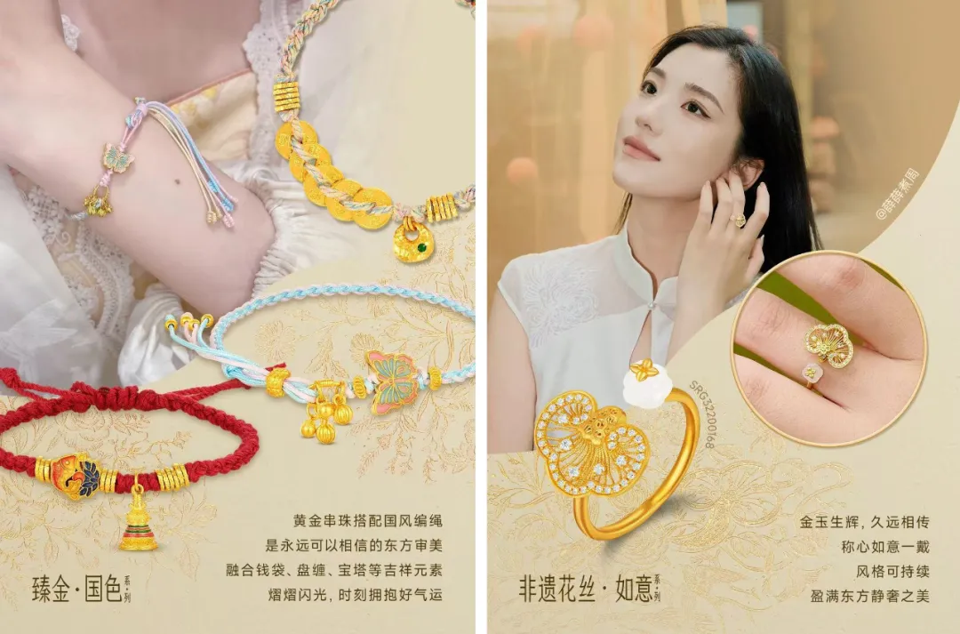 团队推出“花丝·风雨桥”“花丝·如意”“花丝·圆满”等非遗系列,又陆续设计出“梵华系列”“瑧金臻钻系列”等高克重单品。