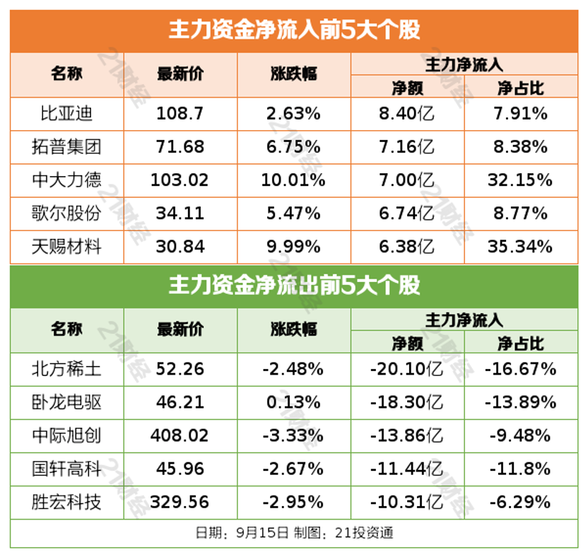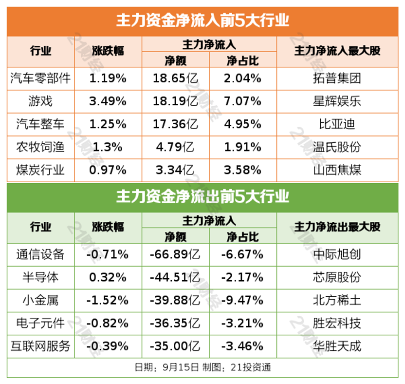9月15日,市场走势分化,沪指窄幅震荡,创业板指冲高回落。截至收盘,沪指跌0.26%,深成指涨0.63%,创业板指涨1.52%。沪深两市成交额2.28万亿,较上一个交易日缩量2458亿。