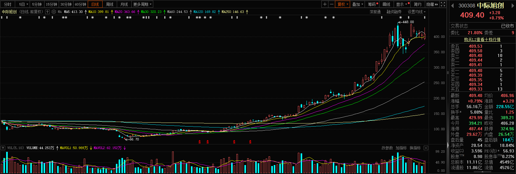 股价方面,中际旭创三季度表现亮眼。数据显示,公司股价从三季度初不足150元/股的水平,一路攀升至一度逼近近期高位450元/股,仅在本次减持覆盖的7月1日至9月17日期间,股价涨幅便高达178.49%,为股东减持提供了较高的市场窗口。