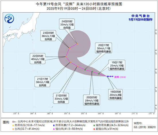 今年第19号台风“浣熊”(热带风暴级)的中心今天早晨5点钟位于距离日本东京东偏南方向约2520公里的西北太平洋洋面上,就是北纬23.6度、东经161.9度,中心附近最大风力有8级(20米/秒),中心最低气压为995百帕,七级风圈半径150~200公里。预计,“浣熊”将以每小时20~25公里的速度向西偏北方向移动,强度逐渐加强。