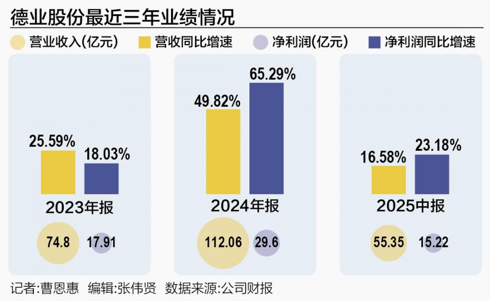 无论是横向对比还是纵向对比,德业股份上半年的业绩的确“可圈可点”:一方面,它是目前为数不多A股光伏板块中盈利且增长的企业;另一方面,与2024年同期相比,德业股份扭转了业绩下滑的势头。