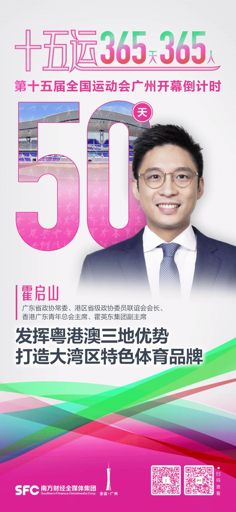 今年,第十五届全国运动会和全国第十二届残疾人运动会暨第九届特殊奥林匹克运动会将首次由粤港澳三地共同举办。在广东省政协常委、港区省级政协委员联谊会会长、香港广东青年总会主席、霍英东集团副主席霍启山看来,十五运会不仅是体育盛事,更是经济转型的重要契机。