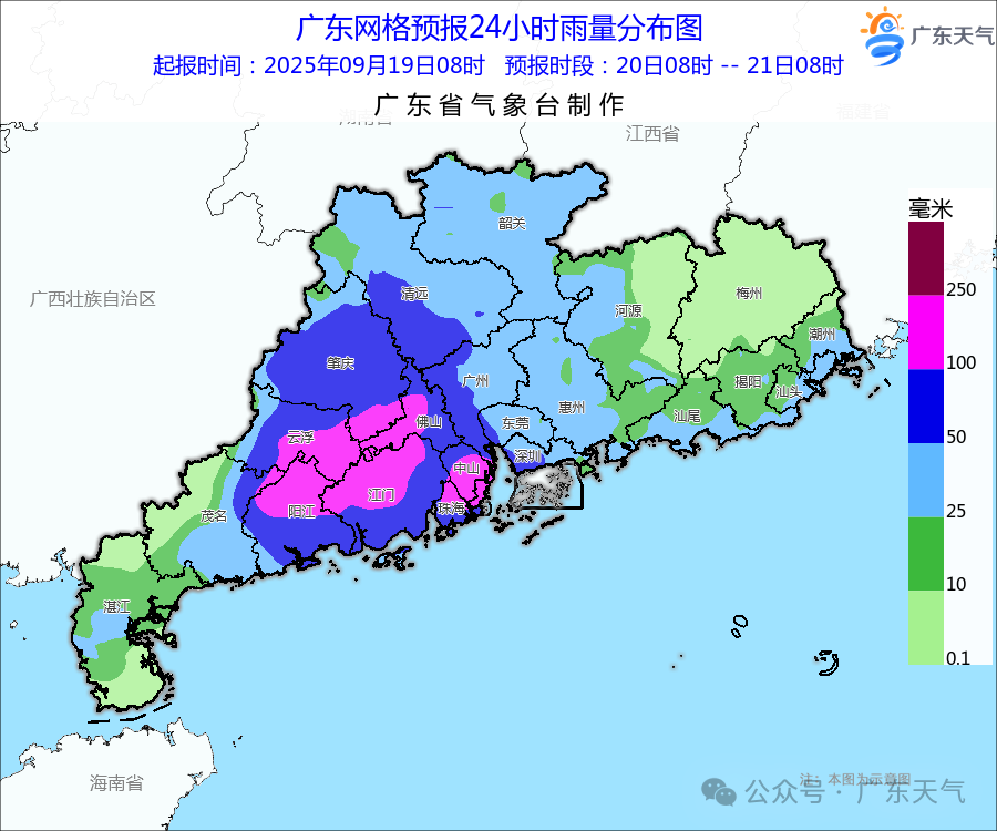 广东雨量分布预报。