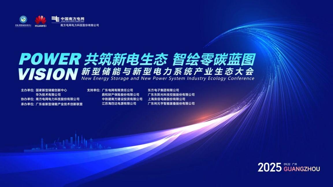 由国家新型储能创新中心、华为技术有限公司联合主办,南方电网电力科技股份有限公司协办,广东省新型储能产业技术创新联盟承办的新型储能与新型电力系统产业生态大会将在9月22日在广州白云隆重召开。