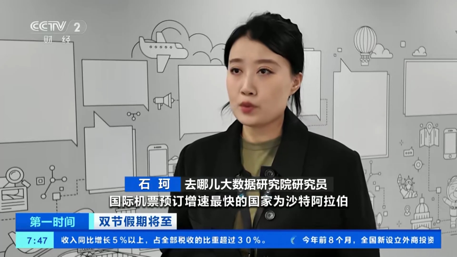 同程旅行国内机票运营经理 殷培丽:国内机票均价与去年同期基本持平,呈现“首尾高、中间低”的特征,小众目的地受到青睐,反向旅行趋势显著。截至9月11日,假期出行的国内机票搜索热度增幅最大的城市分别为:伊宁、泸州、海拉尔、揭阳、赣州、扬州、徐州、芒市、阿勒泰、遵义。